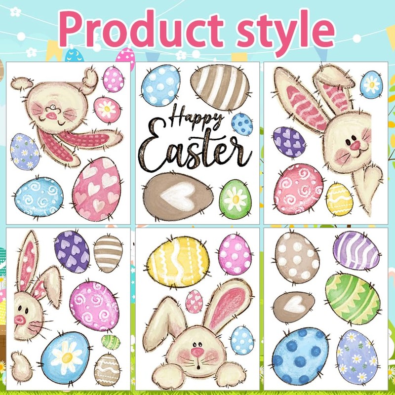 - Package Included You will get 6 sheets Easter window clings, full of various eggs, Bunnys designs and 'Happy Easter' words, rich in size and enough quantity can meet your different decoration needs, easily create a energetic Easter atmosphere