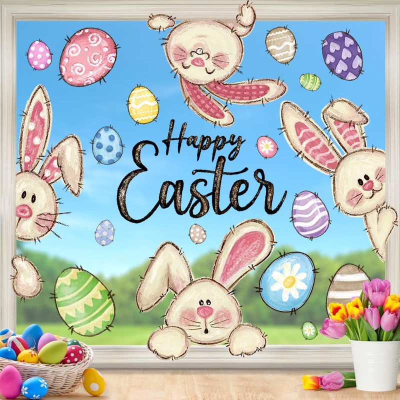 - Perfect Easter Decor Easter window decals is perfect decorations for home, office, store, school windows. Great for Easter, holiday, party decor and it's also an ideal Easter gift for families and friends. Enjoy the fun of DIY with families and create a warmth Spring