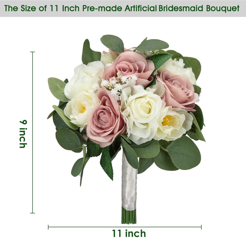 - Set of 6 pre-made dusty pink and white bridesmaid bouquets for wedding. 11 inches in diameter. Perfect for bridesmaid on wedding or even just nice decoration for your home.