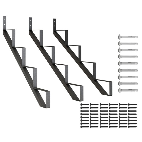 - Complete Installation Kit: Each package includes three 4-step stair stringers, set screws for concrete walls, and screws for attaching wooden treads. (Note: Wooden treads are NOT included.)