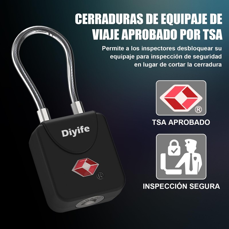 - TSA Approved: Los candado maleta son TSA (Administración de Seguridad en el Transporte). Si los oficiales de seguridad de transporte quieren acceder a su bolsa, entonces pueden usar su llave especial para abrir el candado y lo volverán a cerrar cuando hayan terminado