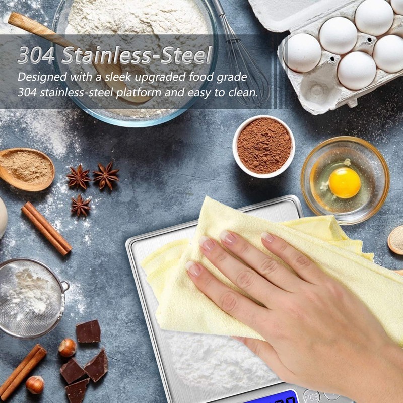 - Escala pequeña: ligera y fácil de usar: 5.5 x 3.3 x 0.9 in, pesa solo 7.05 oz. Se puede utilizar no sólo en casa, sino también conveniente para llevar en cualquier momento. Tiene una función de retroiluminación y lecturas claras por la noche. Te dirá que la batería es demasiado baja o la carga está sobrecargada. Plataforma de acero inoxidable de alta calidad con superficie lisa y botones táctiles para una experiencia elegante
