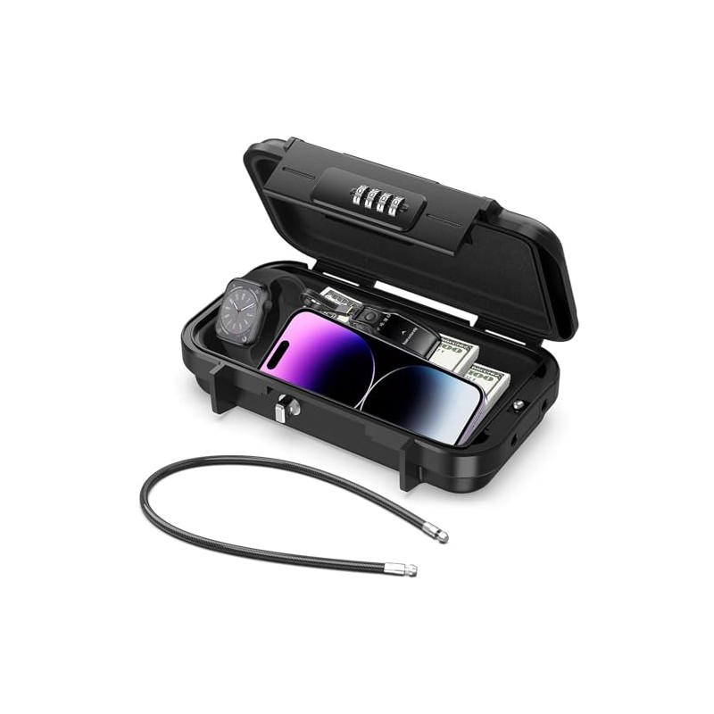 Diyife Portable Safe Box, [Waterproof] Travel Safe Combination Case, Anti-Theft Security Box with 4-digital Code, Lock Box with Removable Wire Rope for Hotels, Travel, Sports, Venues, Office, Vacation