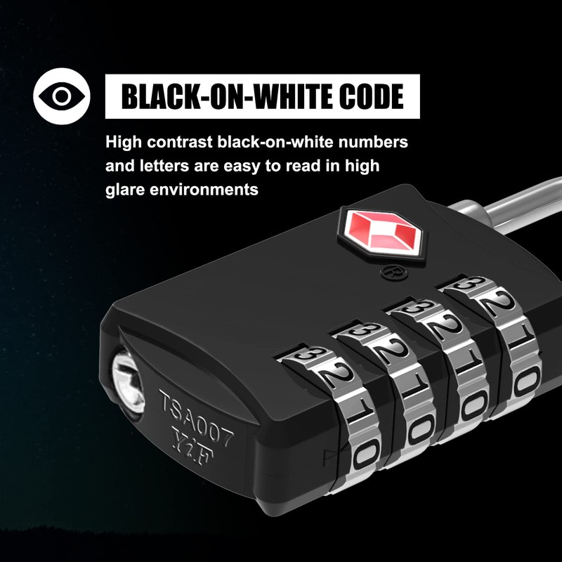 • 【Easy To Read & Easy To Set】Design upgrade, with a password window on the side for easy observation and alignment. The black wheel engraves the white number so you can see the password clearly. Each time you dial a number, you will be able to jump a single digit accurately, won't get stuck, and won't dial the wrong one. Greatly reduced the difficulty of setting passwords for password locks on the market