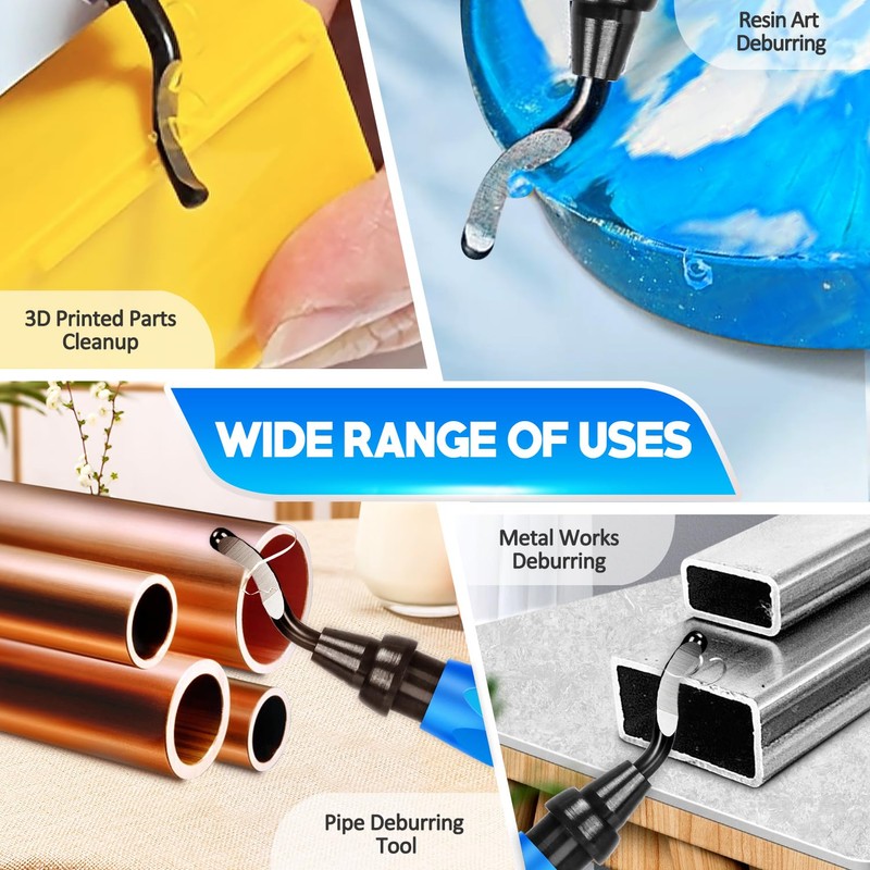 • Multifunctional deburring toolsOur 3D printing deburring tool is perfect for shaving and smoothing. Works on metal, 3D printers, steel, aluminium, plastic, resin or PVC pipes, copper pipes and many other surfaces. Whether you are an industrial professional or a DIY enthusiast, our deburring tool is for you