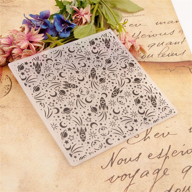 DIYology Space Theme Plastic Embossing Folders for Cards Making Rocket Stars Planet Texture Embossing Stencils for DIY Paper Crafts Scrapbooking Album Photo Decoration