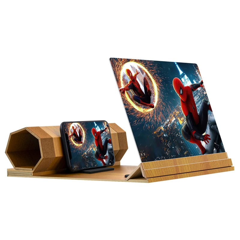 dizaul 14'' Screen Magnifier for Smartphones, Foldable, Wooden Material, Adjustable Length, Compatible with All Models