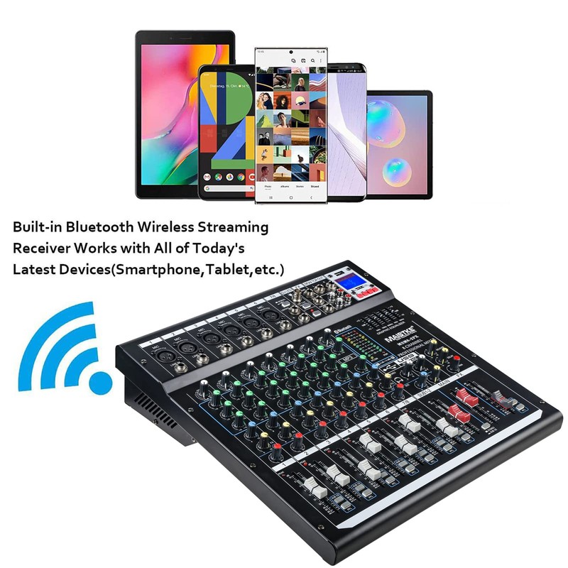 Dj Mixers 8 Channel Audio Mixer Sound Board with Bluetooth, Usb Audio Interface with 48V Phantom Power Sounds Mixer Board with FX Reverb Delay Effect for Streaming