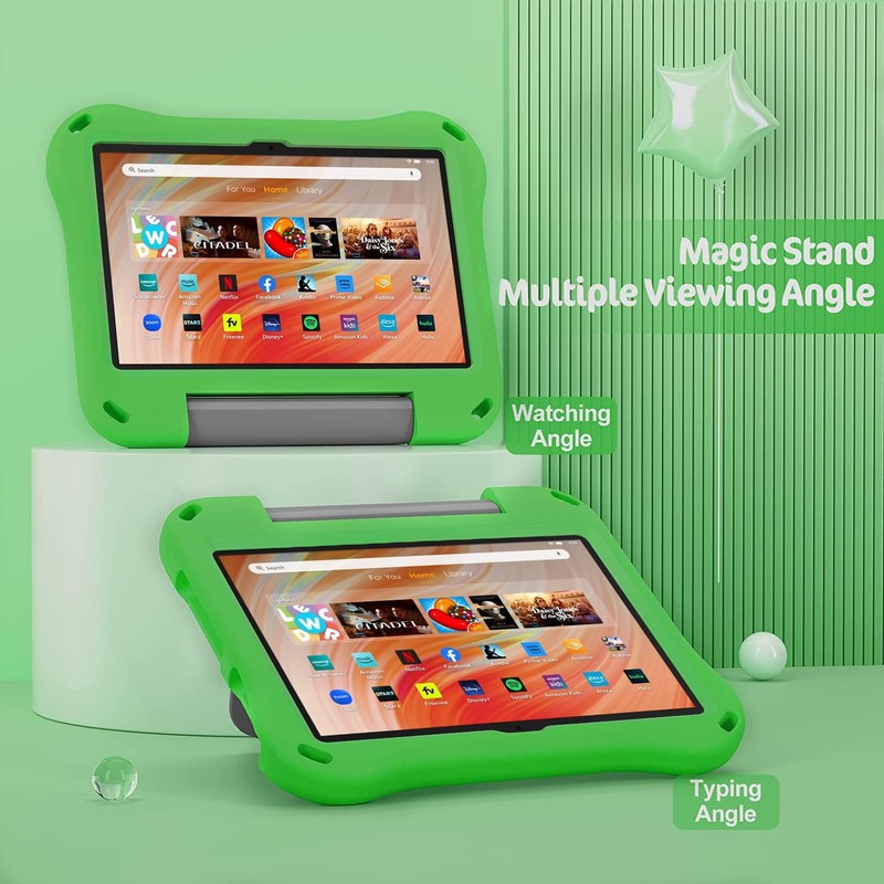DJ&RPPQ 10 Inch Tablet Protective Case for Children, Protective Case for Tablets with 10 and 10 Plus 2023/2021, Shockproof Grip and Stand, Green
