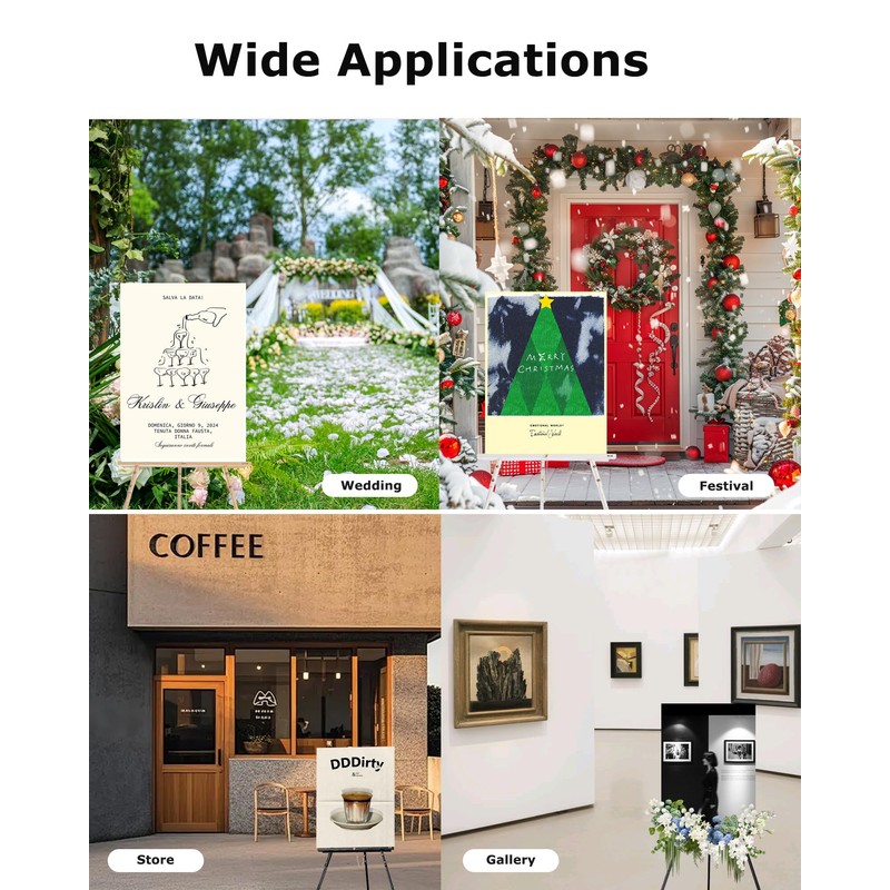 - Wide Applications: DJAR tripod display easel can be applied to various scenes, such as wedding sign holder, celebration parties, festivals, business presentations, art exhibitions, office presentations, welcome sign stand. It can hold different display boards, such as photos, pictures, paintings, posters, store signs, canvas, etc.
