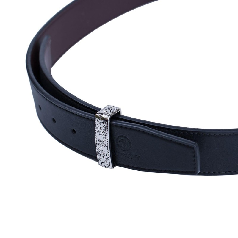 DJCAIZYY Belt Loop Keeper 1 1/2" (38mm-40mm) Western Leather Belt Buckle Accessories Flower Style Bright Silver