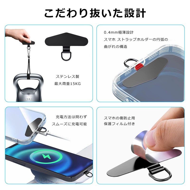 - 【High Quality & Ultra Thin Smartphone Strap Holder】This phone stand is made of ultra-thin stainless steel and "D" shaped metal ring, with anti-scratch film for excellent durability and stability. Compatible with all smart phone models such as iPhone, Huawei, Xiaomi, Samsung, Sony, Oppo, Google etc. Ultra-thin design (0.02 inch (0.4 mm)): There is no discomfort even when sandwiched between your smartphone and the case, so you don't have to worry about compatibility. Simply place the tag patch between the case and your smartphone. No interfere with cable charging or wireless charging, it can charge smoothly