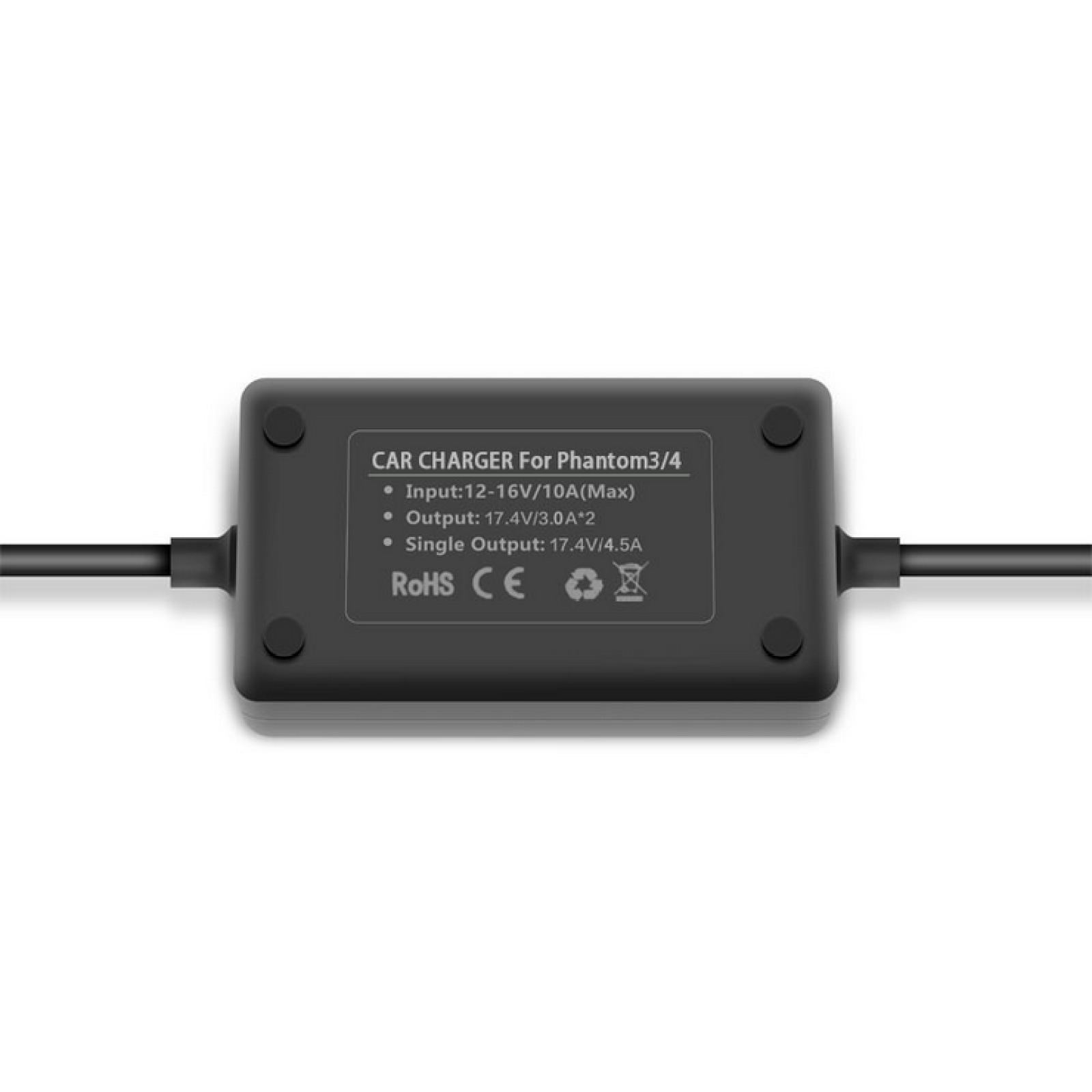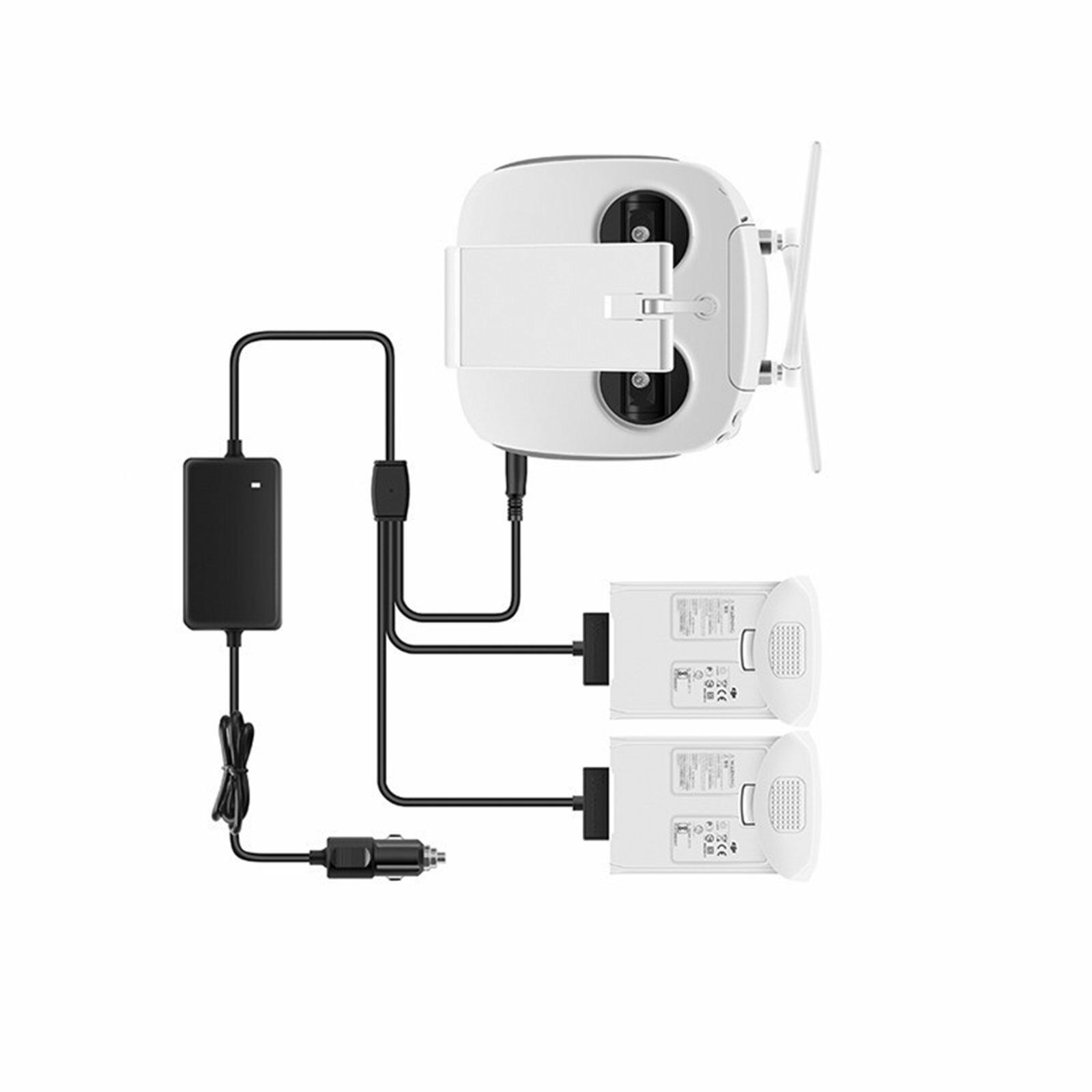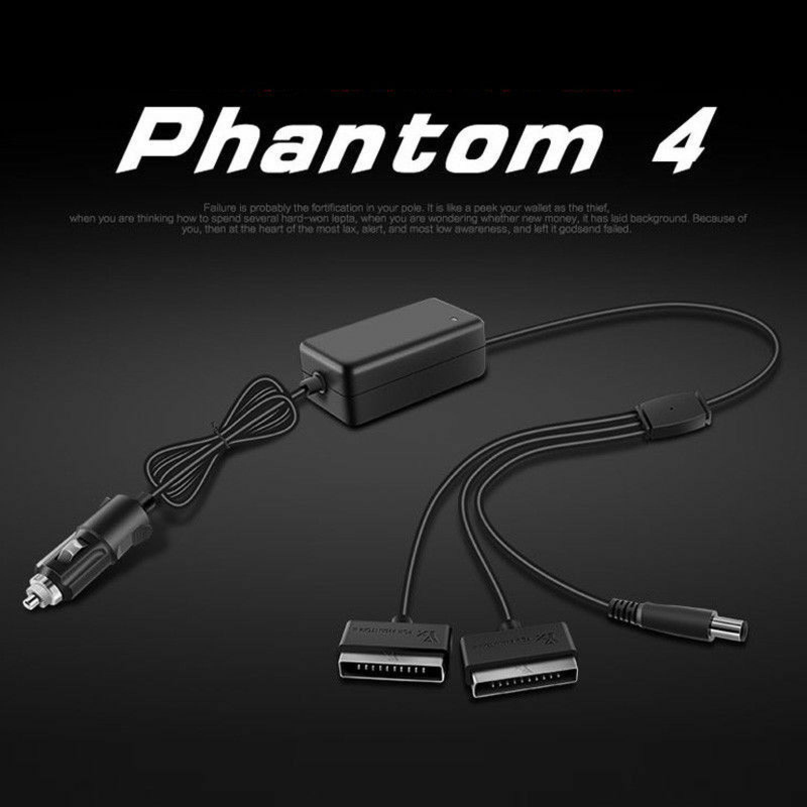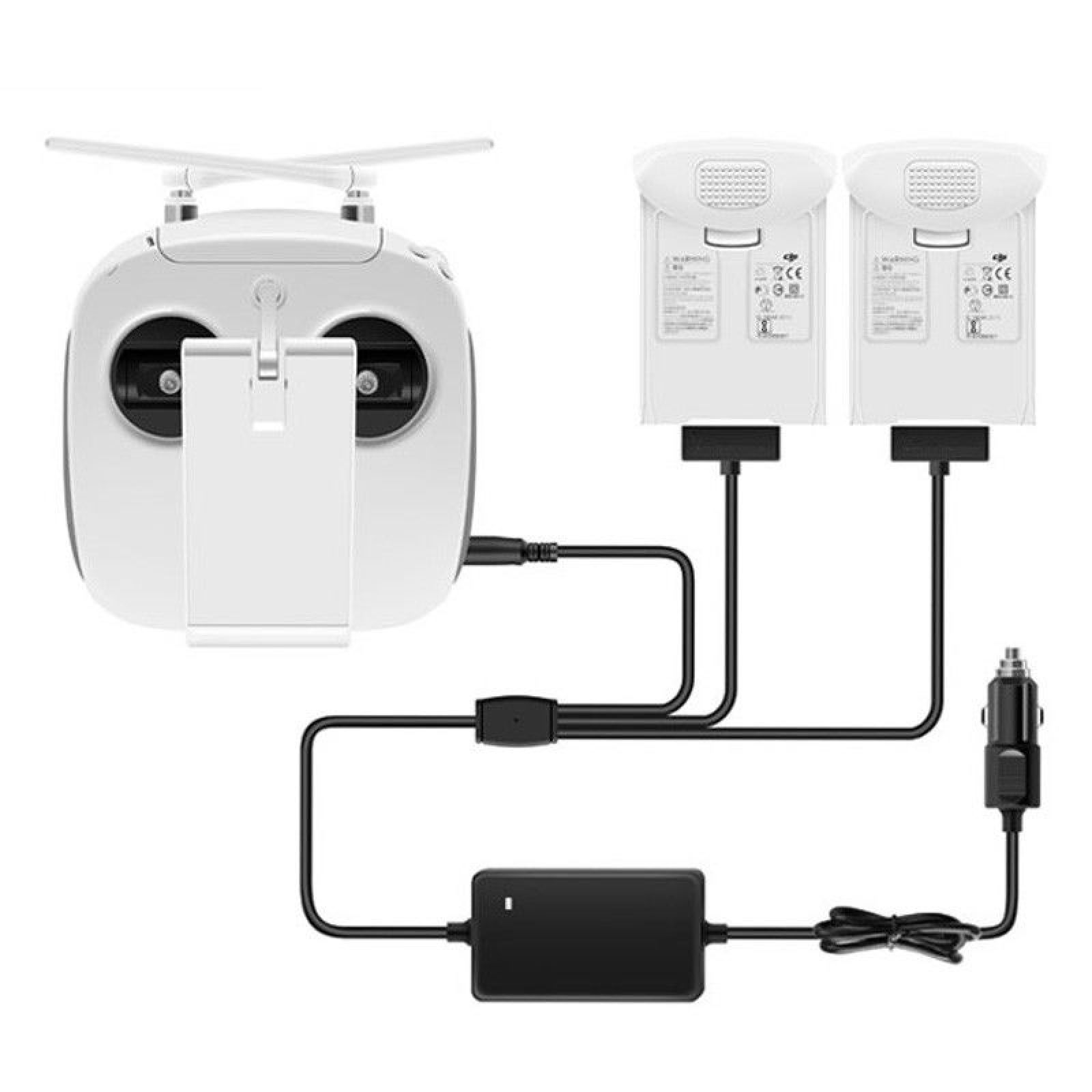Specially designed for batteries & transmitter of for DJI Phantom 4 series RC drone, used to Charge for Phantom 4 Intelligent Flight Battery and remote control through a Car's Cigarette Lighter Port, Can Charge 2 Batteries and a remote control at the same time.