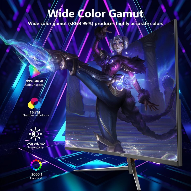 - 【Enhanced Gaming Experience】The DJiEX 27inch Curved gaming monitor features an impressive 180Hz refresh rate, coupled with Freesync technology to effectively eliminate tearing and stuttering, ensuring crystal-clear video playback for an exceptional gaming experience.