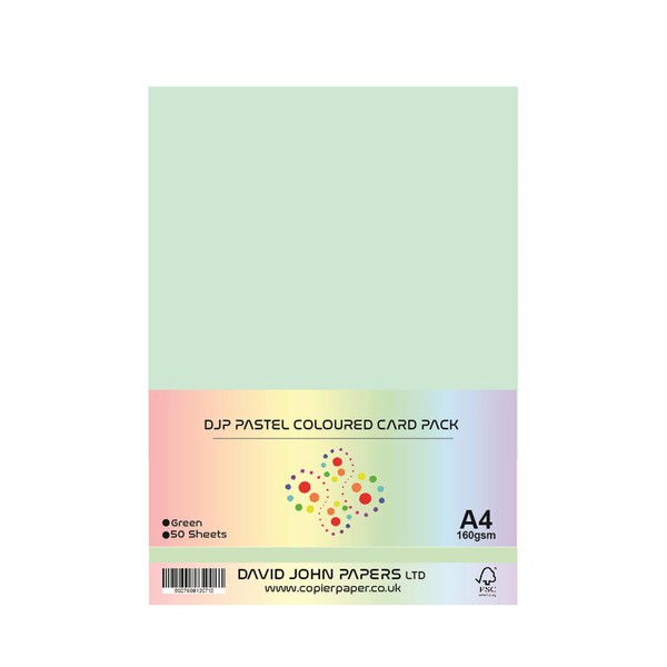 DJP A4 160gsm Pastel Green Coloured Craft Card (50 Sheets)