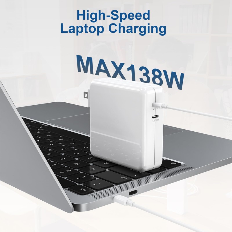 Djsanu Djsanu Mac Book Pro Charger 138W USB C Charger Compatible with MacBook Pro 16, 15, 14, 13 Inch, MacBook Air 13 Inch, iPad Pro and More USB C Devices, Include 2 Cables