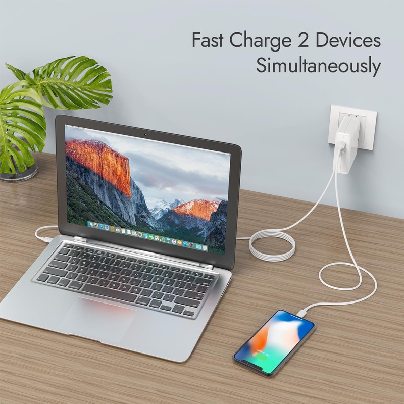 - Multiple charging options: With 2 charging ports and 2 charging cables (one 6ft USB C to USB C for your laptop, one 3.28ft USB C to Cable for iPhone),Super long cable let you can charge and work anywhere; made of top-rated thicker copper wire and coated with premium seamless braided nylon, tested with over 10000+ times bend to provide 4 times longer lifespan.