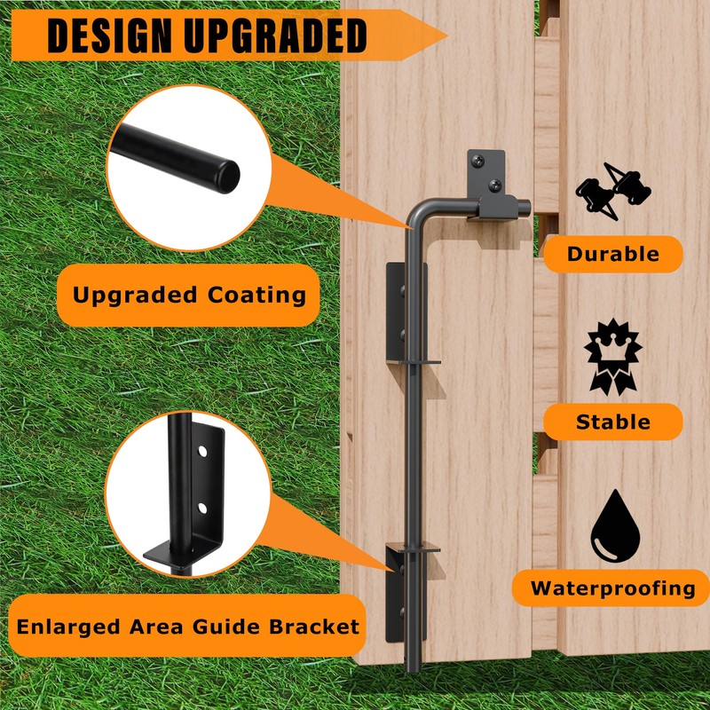 - [Sturdy Premium Steel]Our heavy duty cane bolt made with solid steel is hard and resistant to deformation. And the surface coated with black powder coating, ensures better corrosion and abrasion resistance to allow the drop bolt having a long-lasting performance in harsh outdoor conditions.