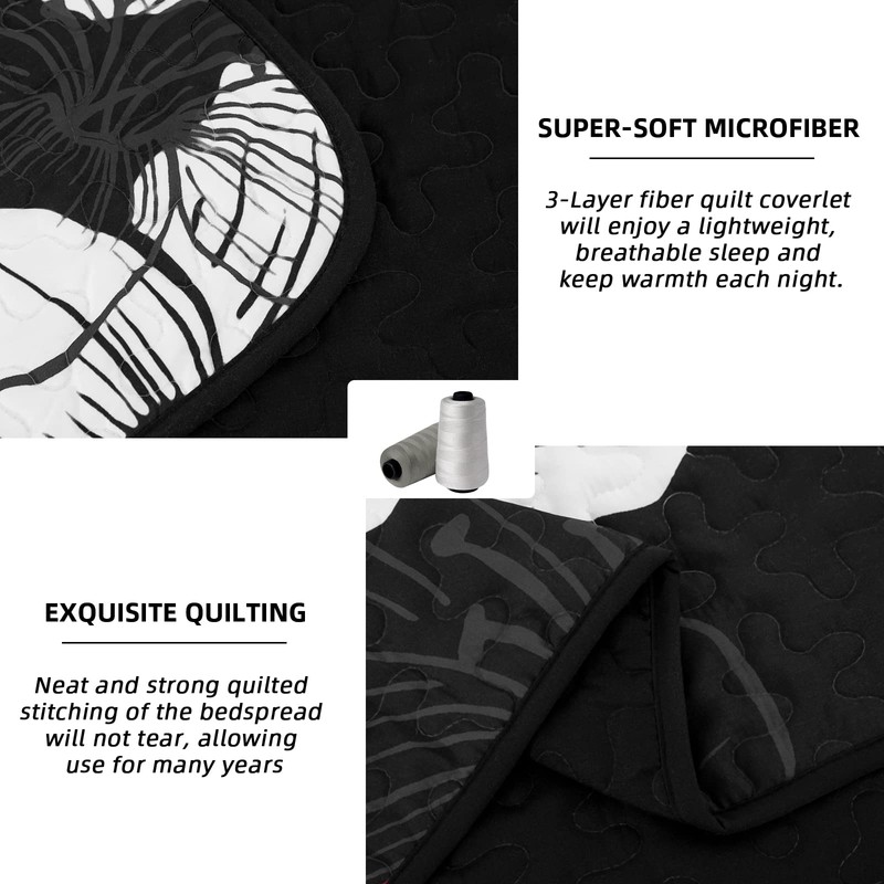 - 💎 Unique Design: Steady of black combine with boho flower patterns make the quilt appearance more elegent and modern. Casual U stitched also can protect the inner filling easier than others quilt. A best bedding decorctive for your room.