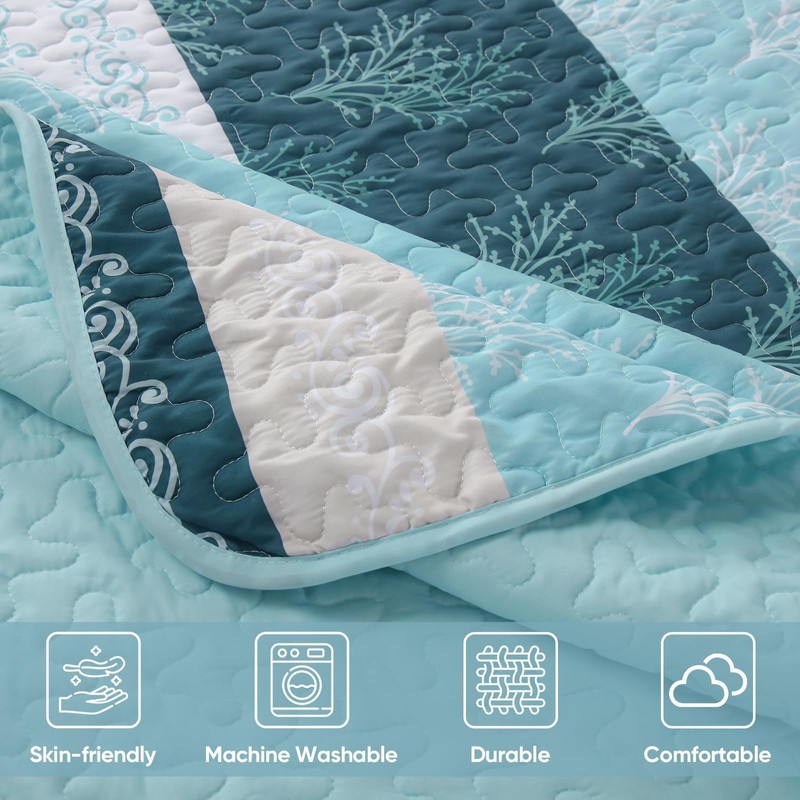 - Soft Microfiber Bedspread: The light blue quilt is made from high-quality microfiber that provides an exceptionally soft and comfortable experience, The precisely stitched, seamless edges are durable and can withstand washing or scratching for many more years of use.