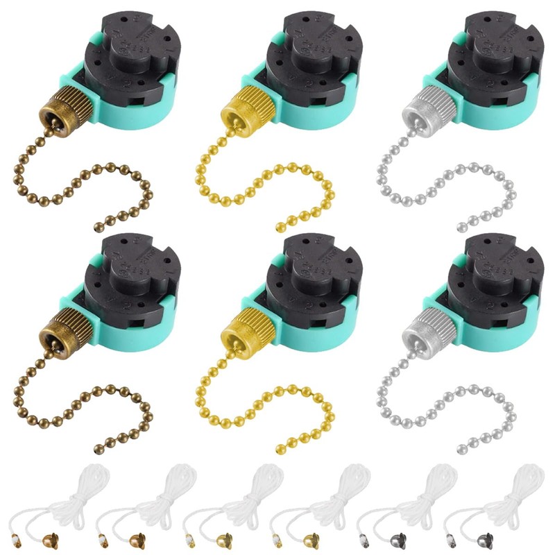 - Package Content: 6 x Fan Pull Chain Switch(Each Color for 2 Pcs), 6 x Extension String