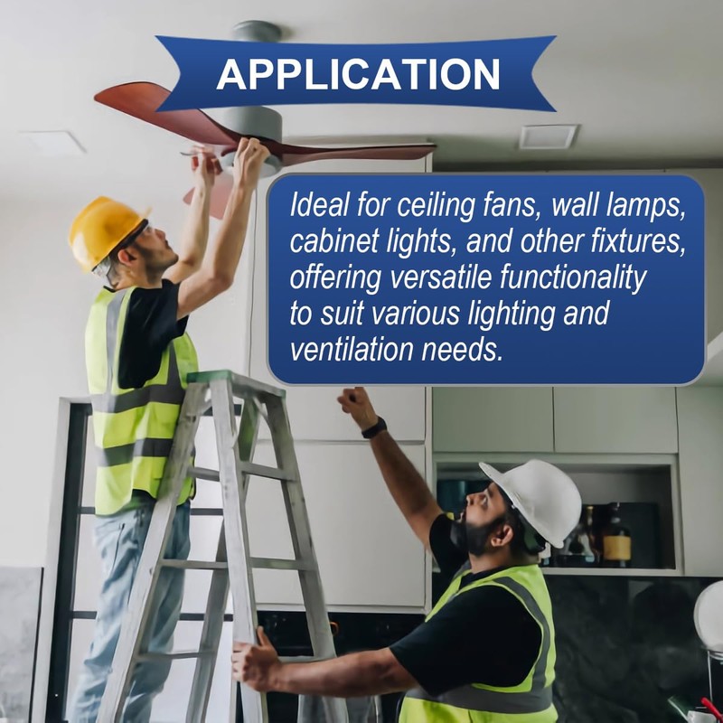 - Application: Ideal for ceiling fans, wall lamps, cabinet lights, and other fixtures, offering versatile functionality to suit various lighting and ventilation needs throughout your home or office.