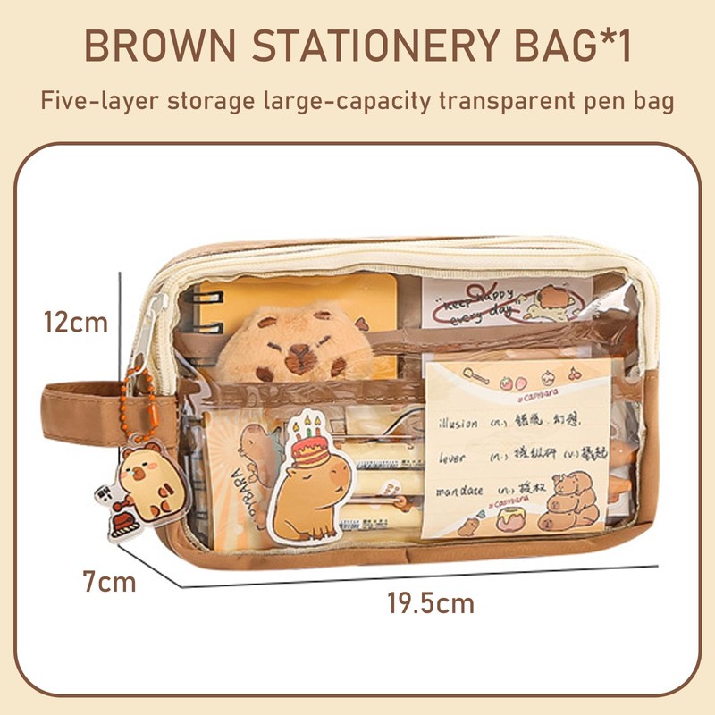 - Our Capybara stationery set features a thoughtful multi-layer storage system, complete with carefully placed pockets that ensure neat and orderly storage.