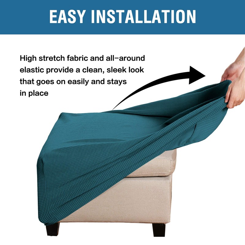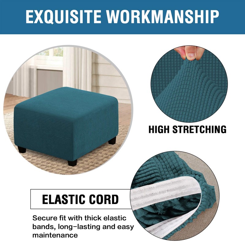 • GREAT FIT: This innovated 1 piece ottoman cover is crafted from durable and soft high stretch knitted jacquard fabric. Suitable for most square ottomans.