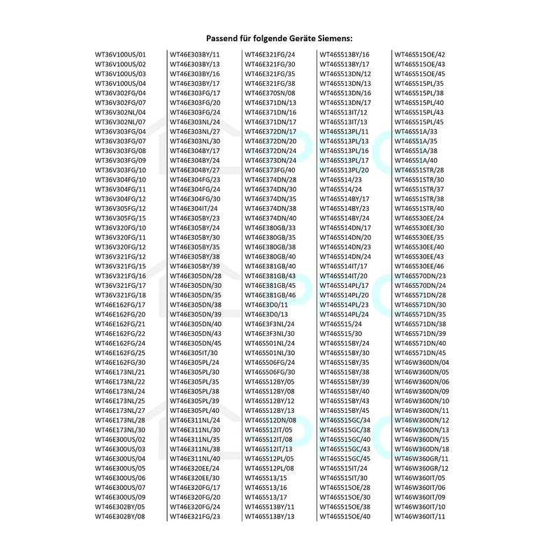 - Suitable for Siemens models iQ700 / iQ500 / iQ300 / E 46.30 / S 46.51 / FitnessPlus / iQ500 selfCleaning condenser / iQ300 SelfCleaning Condenser / iQ700 selfCleaning condenser / IQ700 blueTherm