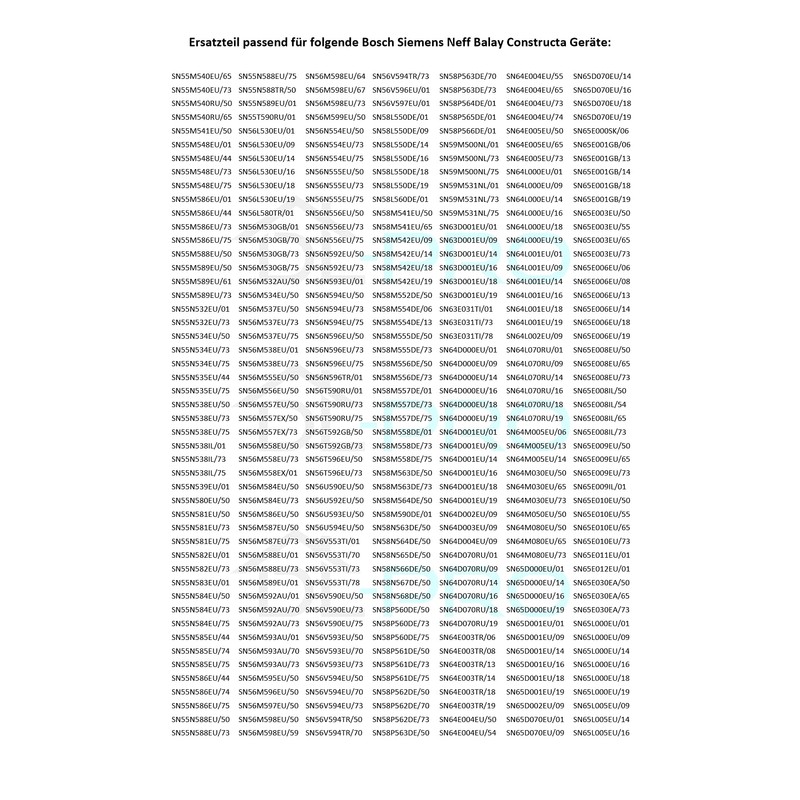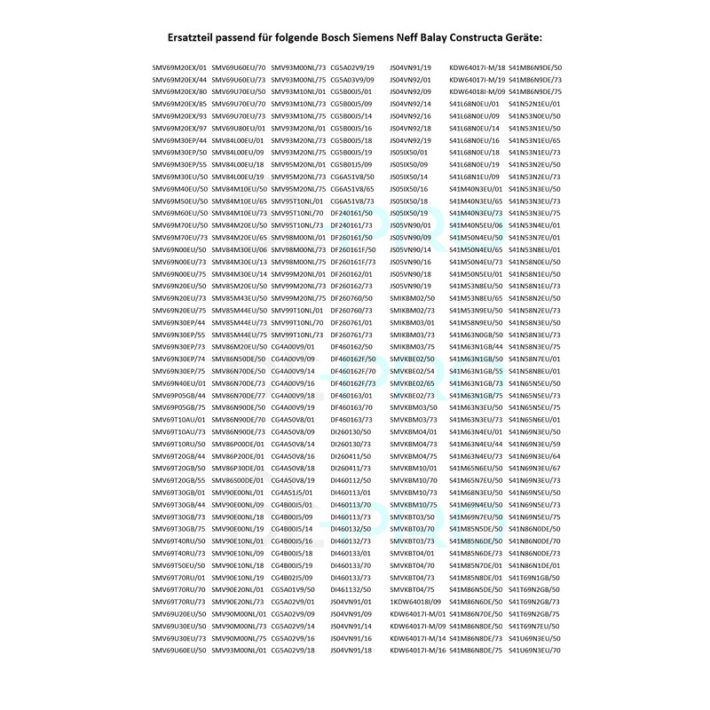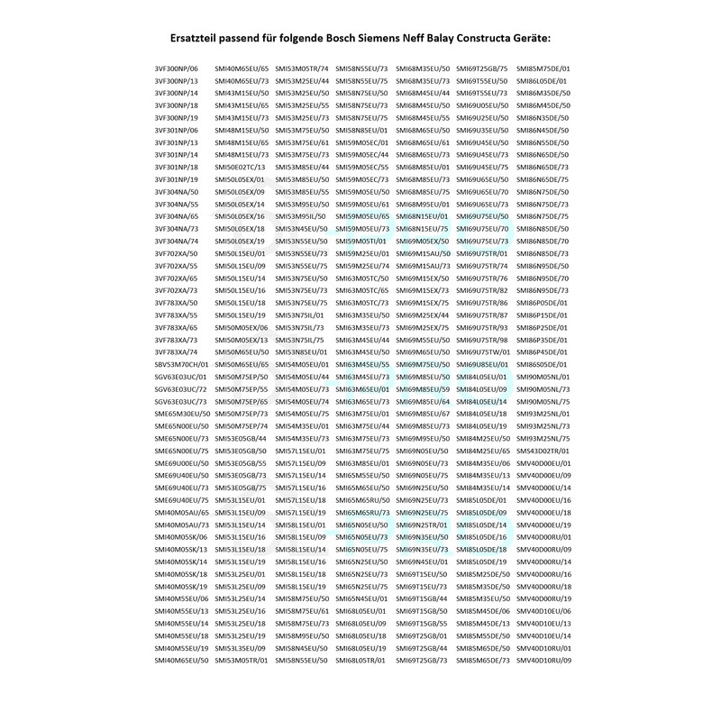 - Suitable for Bosch Siemens Neff Balay Constructa Gaggenau Junker Koenic Küpperbusch Pitsos Viva 00754869 754869 (s 00623537 623537 00626662 62)