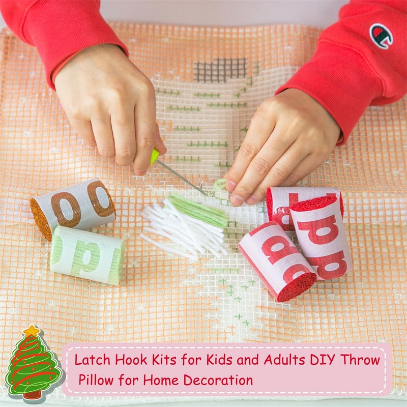 DL-YTG DIY Latch Hook Kits for Art Craft Throw Pillow Pattern Paint Cross Stitch Set :Christmas-16X16 Inch