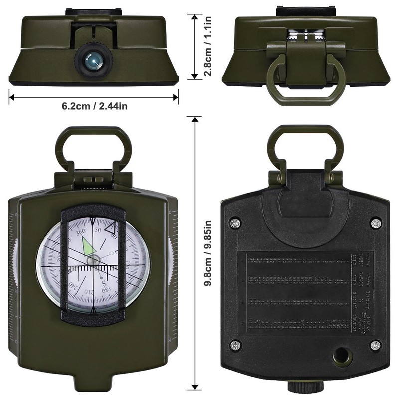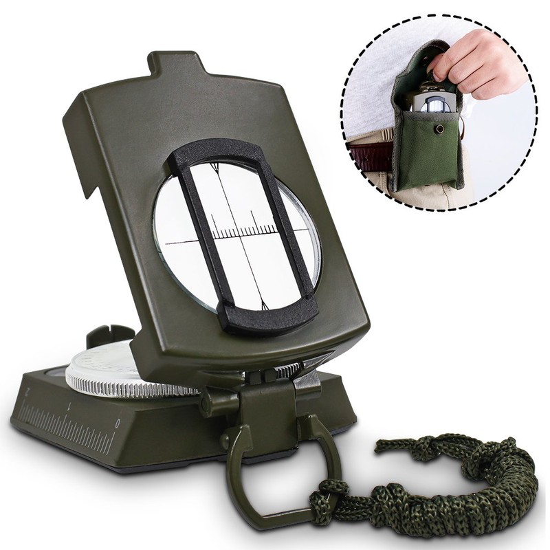 DLAND Compass Waterproof Hiking Military Navigation Compass with Pouch Lanyard, English User Guide Included. ( Army Green )