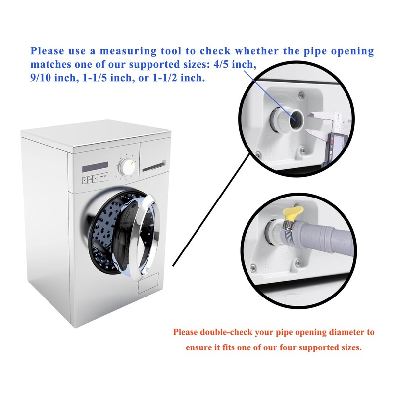 - 【Universal Fit】 Compatible with most front-load/top-load washers, dishwashers & dehumidifiers (LG/Samsung/Whirlpool, etc.). Four inner diameters of 4/5, 9/10, 1-1/5, and 1-1/2 inches can be cut according to actual size,Confirm your original hose size before purchase!