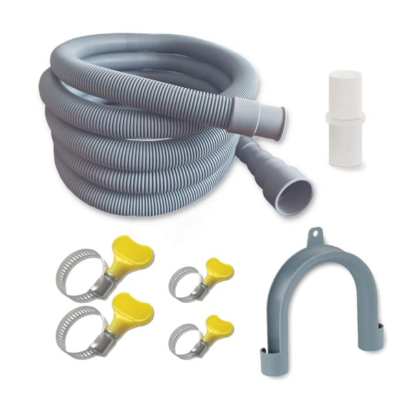 DLHMBOQ 10ft Washing Machine Drain Hose Extension Kit - Universal for Washer, Dishwasher & Dehumidifier, 7-Piece Set with U-Bracket, 4 Clamps & Adapter