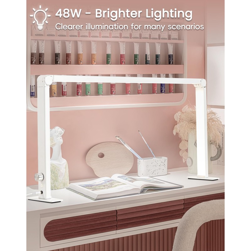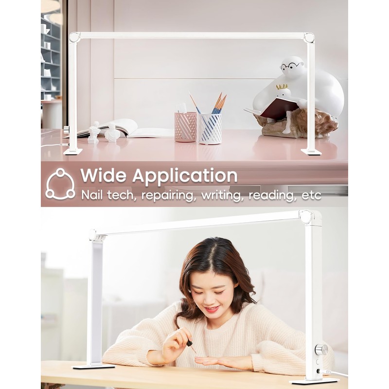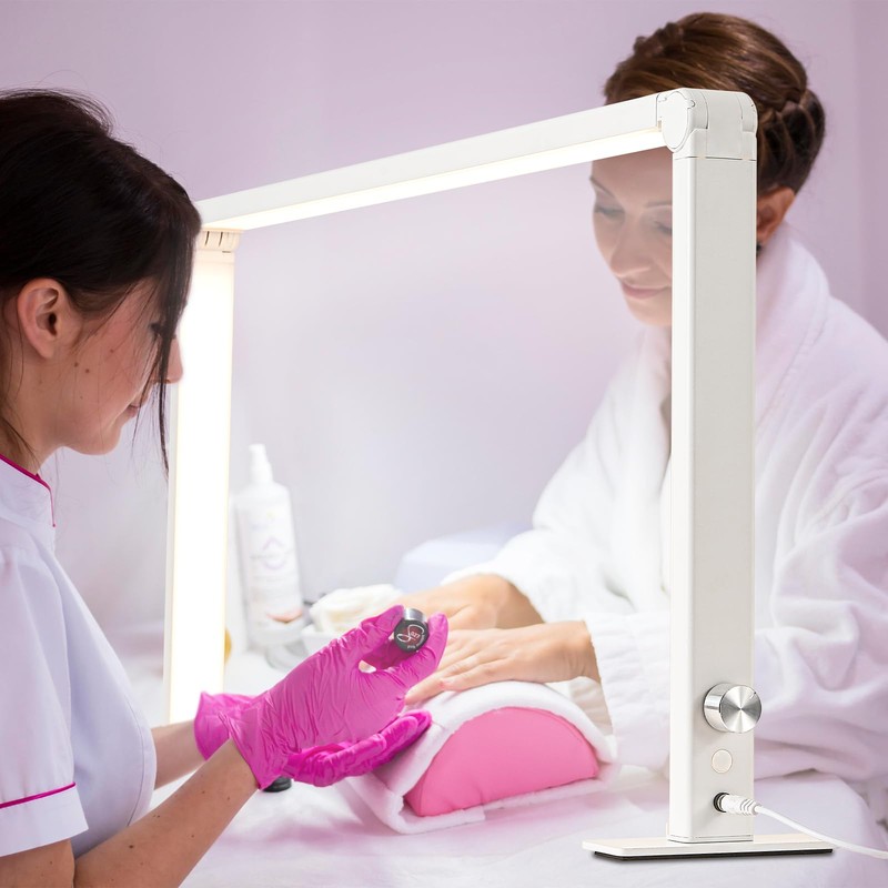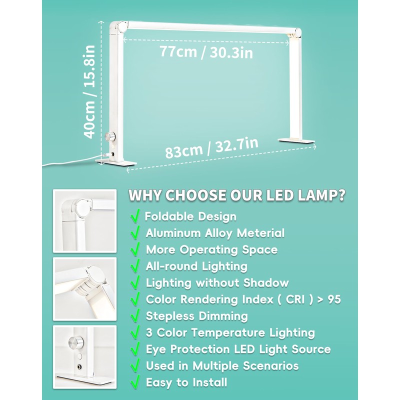 DLITISH Foldable Half Moon Light for Nail Desk, 48W Rectangle Nail Tech Lamp, 33in LED Desk Lamp with Knob, 3 Modes 3000-6000K Dimmable (White)