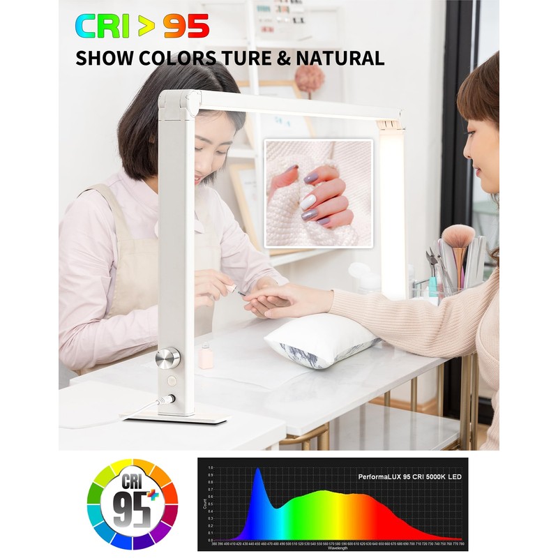 - 【Color Rendering Index > 95】 At the appropriate color temperature, an object illuminated by a light with a color rendering index of 95 or above appears nearly the same color as it does under natural light. Meanwhile, the use of eye protection LED light source creates a bright and non-flickering lighting environment, reducing visual fatigue and ensuring optimal lighting for delicate nail work.