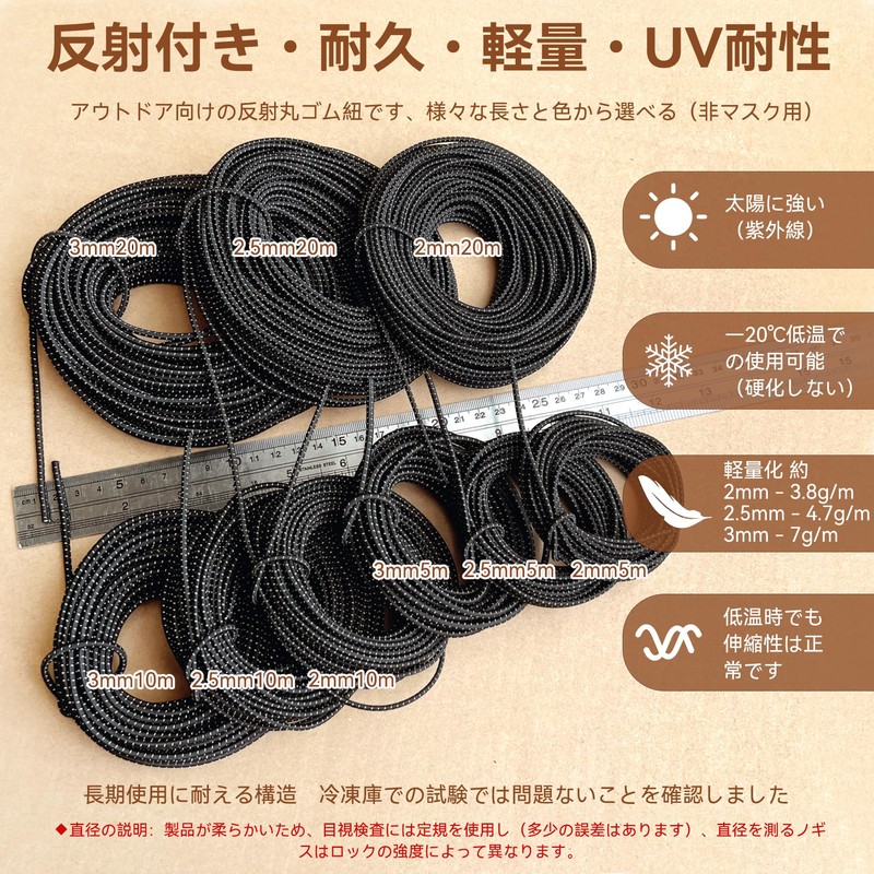 - [Specifications] Approximately 0.08 - 0.13 oz (2 - 3.8 g/m, 2.5 - 4.7 g/m, 3 mm - 7 g/m; Available in various lengths and colors, Length: 16.4 ft (5 m), 10 m / 20 m (20 m), Unscratched, and more elongation. Will not break even after repeated use. ✔ Rope after cutting, expose both ends on low heat to prevent loosening. (Non-Masked)