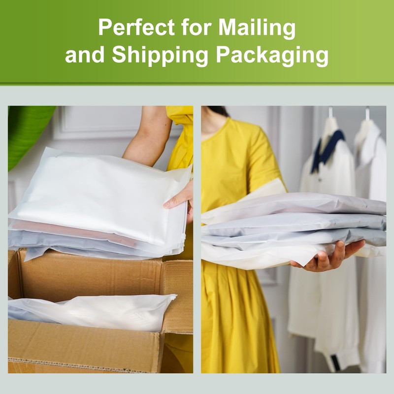 - FROSTED CLEAR - Frosted film give an elegant and professional look, easy to see what's inside the plastic packaging bags. A must have for home organzing, travel packaging, business shipping etc. Great for packaging & mailing clothing, tshirt, sweaters, toys, shoes, artwork, photos, prints, files, cosmetics, usb cables, brochures etc.