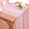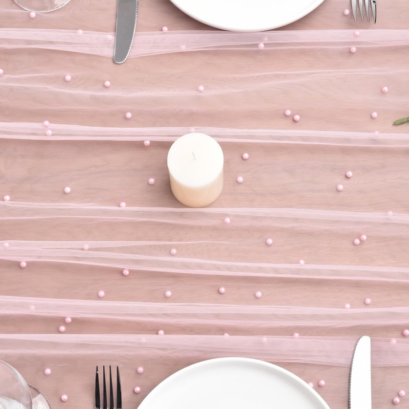 Dlpafzy Blushing Pink Pearl Fall Thanksgiving Table Runner Boho Rustic Tulle Lace Table Runner for Baby Shower Wedding Arch Decor Veil Dessert Table Decor 3pcs