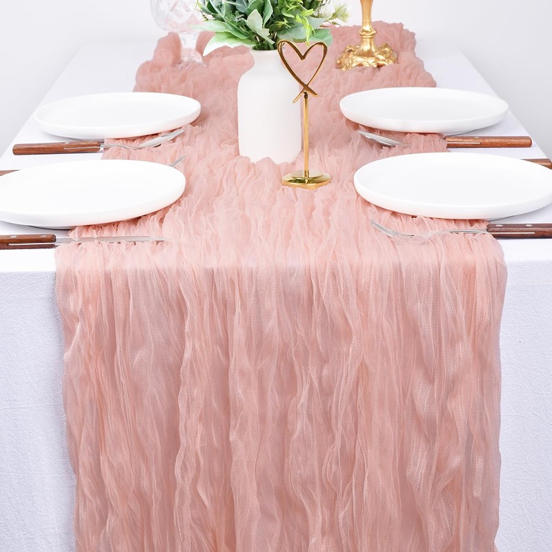 - This boho cheesecloth table runner is made from high quality premium wrinkled fabric.A cheesecloth table runner can create a romantic atmosphere to impress your guests.