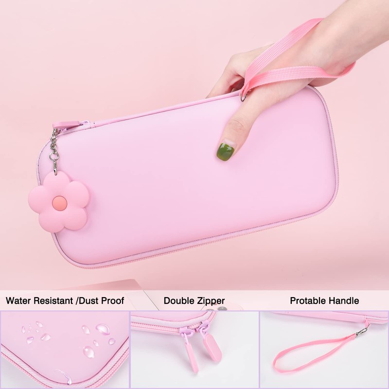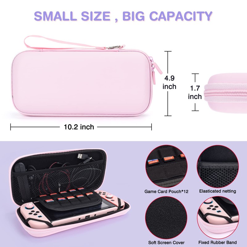 DLseego Carrying Case Compatible with Switch Accessories Bundle for Switch Console with Dockable Hard Shell Switch Protective Case and Thumb Grip Caps, Carry Bag for Switch Pink