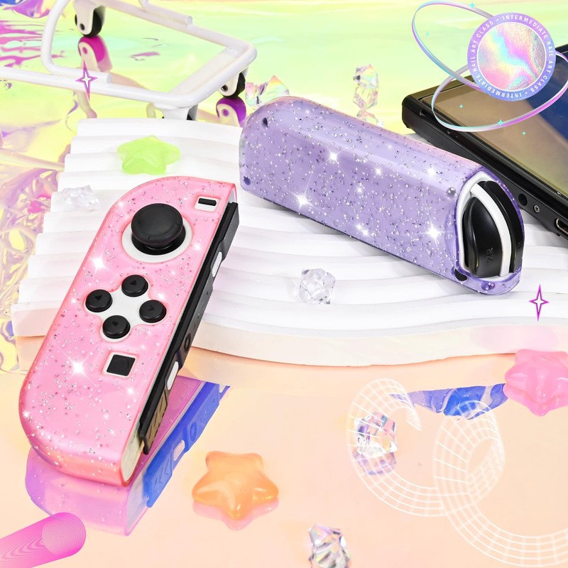 - Sparkle Crystal Clear Cover: The glitter shell shows the original color of your Switch controller,which can match the style of each console case easily