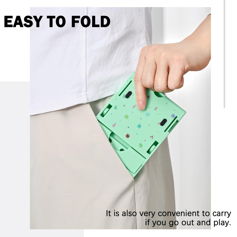 DLseego Stand Suitable for Switch 2/OLED/Lite, Angle Adjustable Holder Kickstand, Portable Foldable Non-Slip Non-Shake Kawaii Bracket with 4 Height Settings - Green Leaves