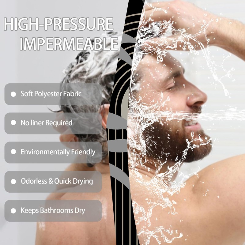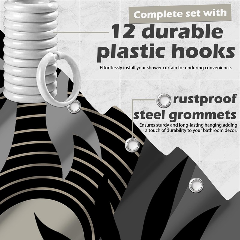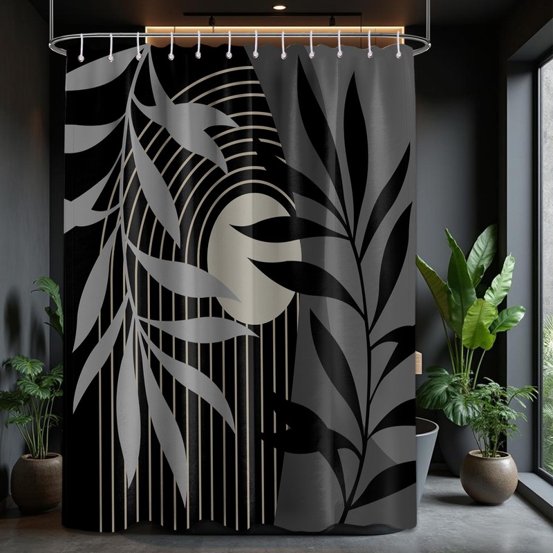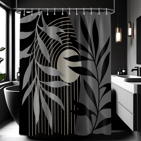 - Waterproof and Splash-Proof: Made of 100% waterproof polyester; effectively keeps water inside the tub; helps maintain a clean environment featuring a mid century modern black and grey shower curtain or boho shower curta