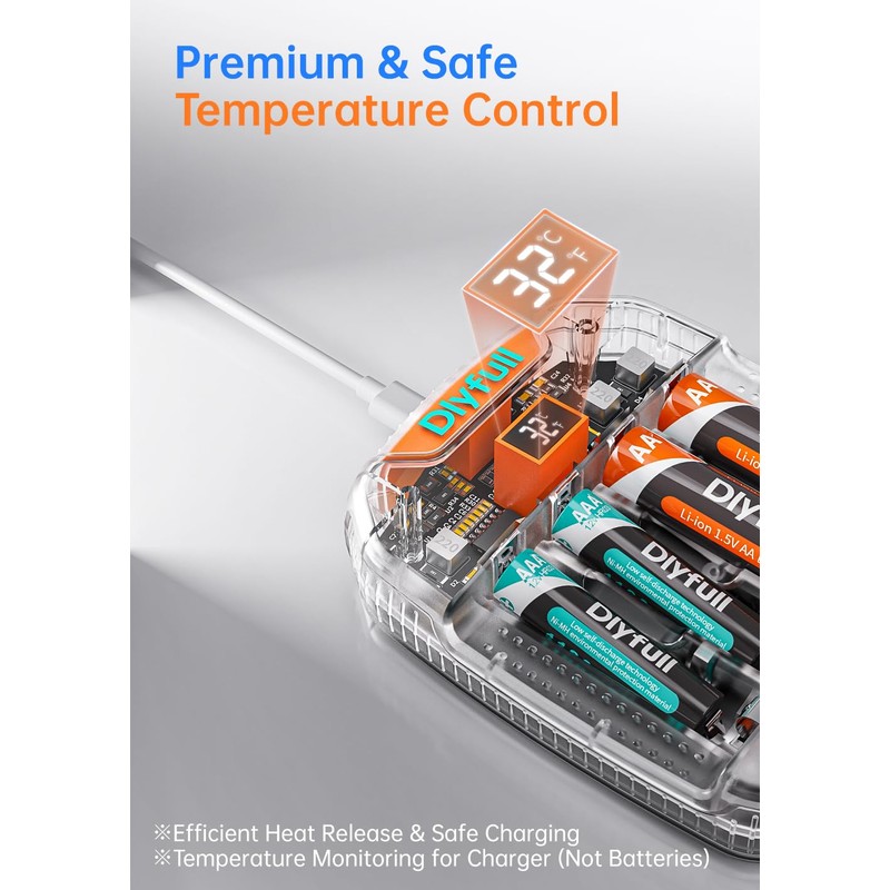 - 【Low-Temp Safety Monitoring 】Made of durable, fire-retardant ABS material with real-time temperature control. AA battery charger ensures long-term use with effective heat dissipation—protected from overheat & damage