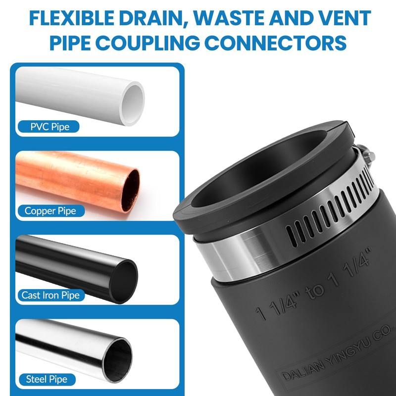 - CONNECT VARIOUS PIPE TYPES: Our TPE pipe couplings can connect plastic pipes (PVC, ABS, CPVC, smooth wall HDPE), cast iron pipes, copper pipes, steel pipes or other pipes for a waterproof joint