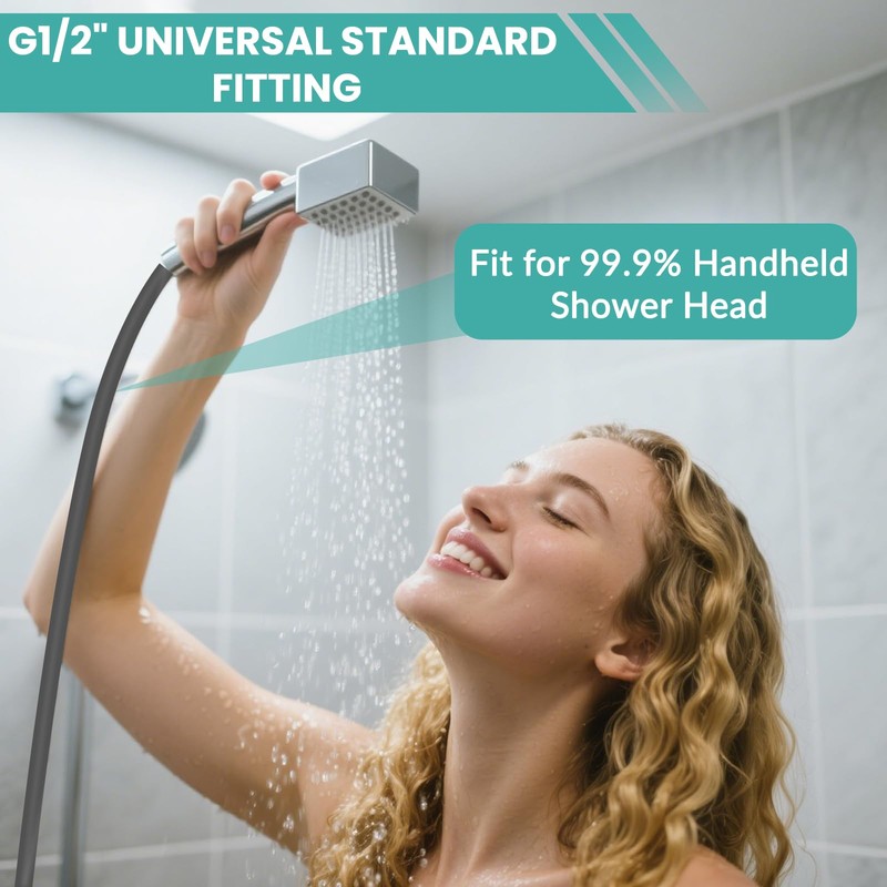 - UNIVERSAL STANDARD FITTING: The conical and hex connectors are G1/2 standard size, fit 99.9% US family handheld shower head. The shower tube comes with two washers for a secure seal