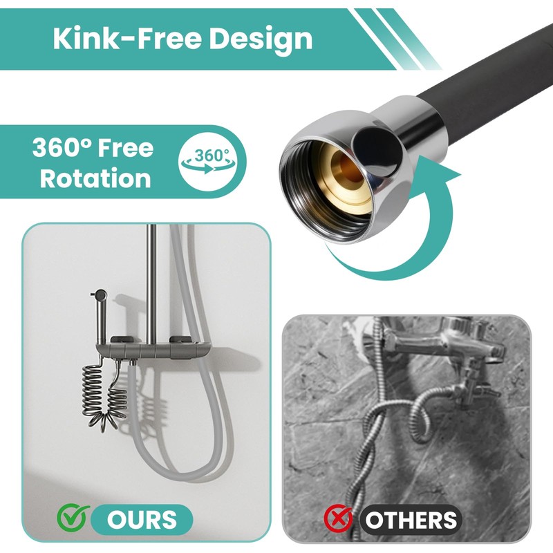 - KINK-FREE DESIGN: The premium brass fitting allows the shower head to be rotated freely for a full 360° to prevent the shower hose extension from tangling or kinking