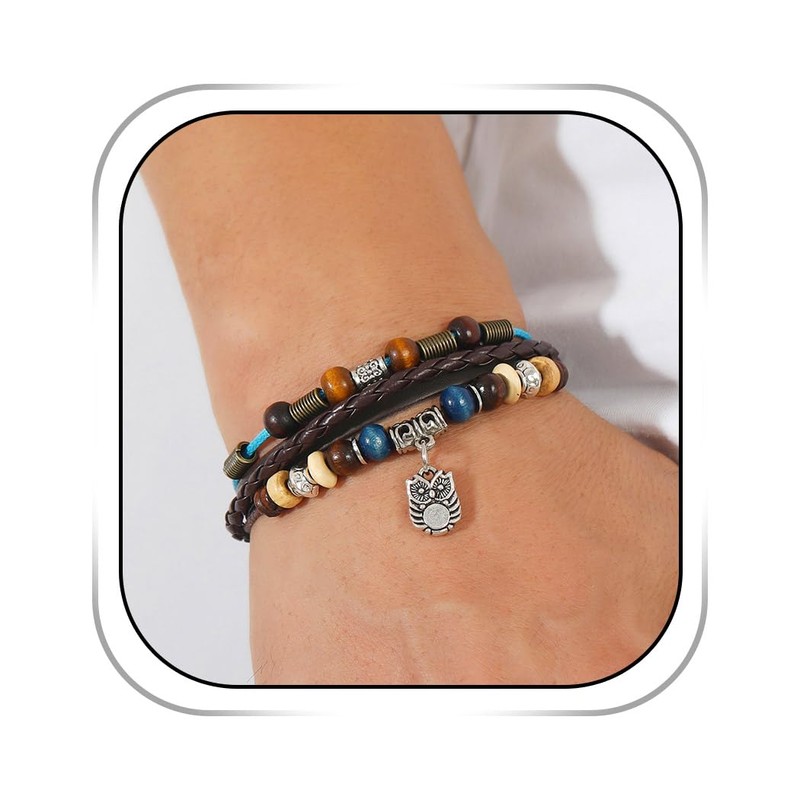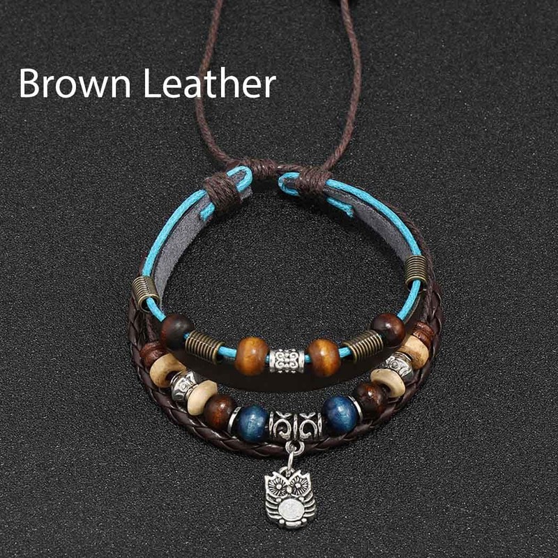 - Leather beaded bracelet is made of brown leather, wooden beads and alloy owl, Comfortable to wear without rubbing