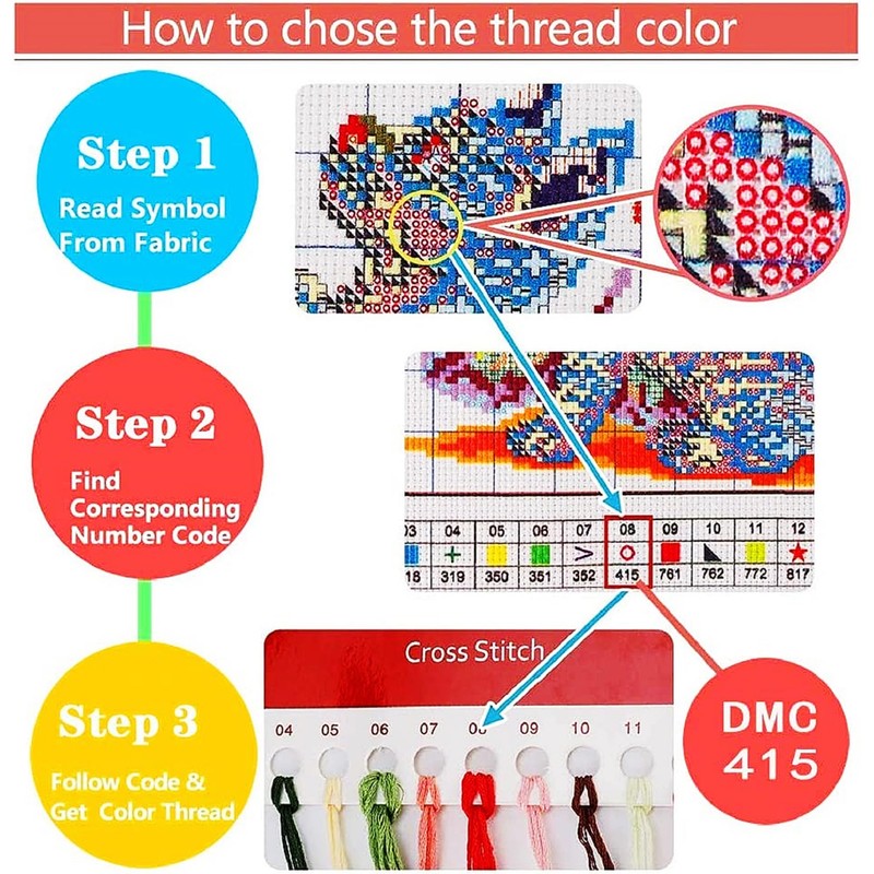 - 💙Easy to operate:The cross stitch pattern is clearly printed with colored small squares and marked with symbols. Each symbol corresponds to a cross stitch color. The symbol is written on the chart, and the corresponding thread color is written below the chart. The printed cross stitch kit includes everything you need to start your easy embroidery journey.